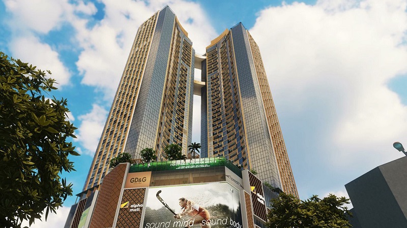 - Quy mô dự án Alpha Hill: 8.320m2, bao gồm 2 block cao 48 tầng, trong đó 8 tầng thương mại và 40 tầng dành cho căn hộ